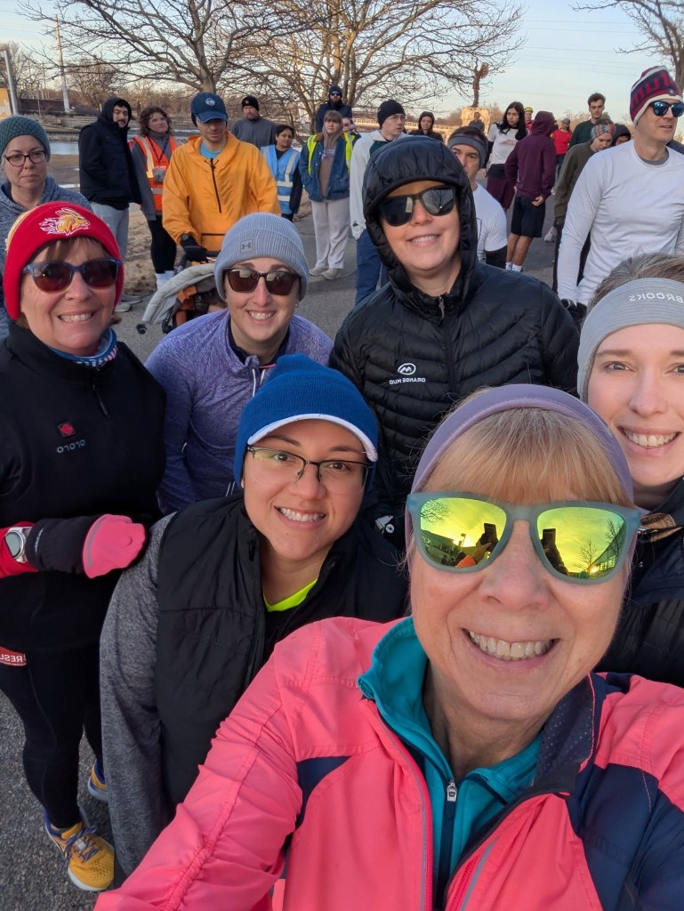You don’t even have to run at a group run. I’m still slowly working my way back from some knee issues a year and a half ago, so sometimes I just show up to walk a few miles. Nor do you have to be up for whatever the posted mileage is. Don’t wanna run 10 miles on a Saturday morning? No problem — Angela usually gives suggestions on how and where to shorten a route. Or there’s always the option of doing an out-and-back along the route for whatever mileage you desire.